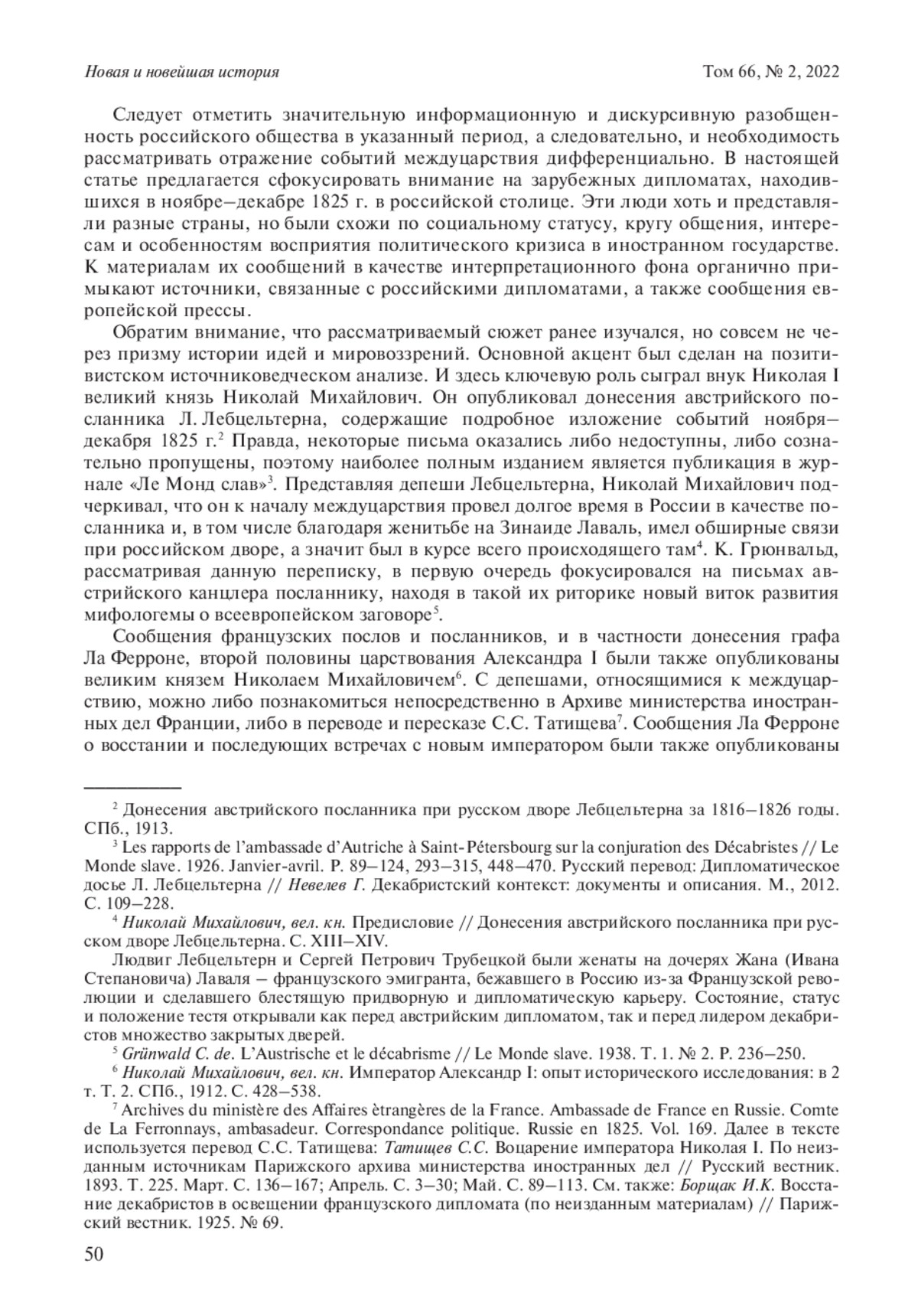 35. Татищев С.С. Воцарение императора Николая I. По неизданным источникам Парижского архива министерства иностранных дел // Русский Вестник. 1893. Т. 225. Март. С. 136-167; Апрель. С. 3-30; Май. С. 89-113.