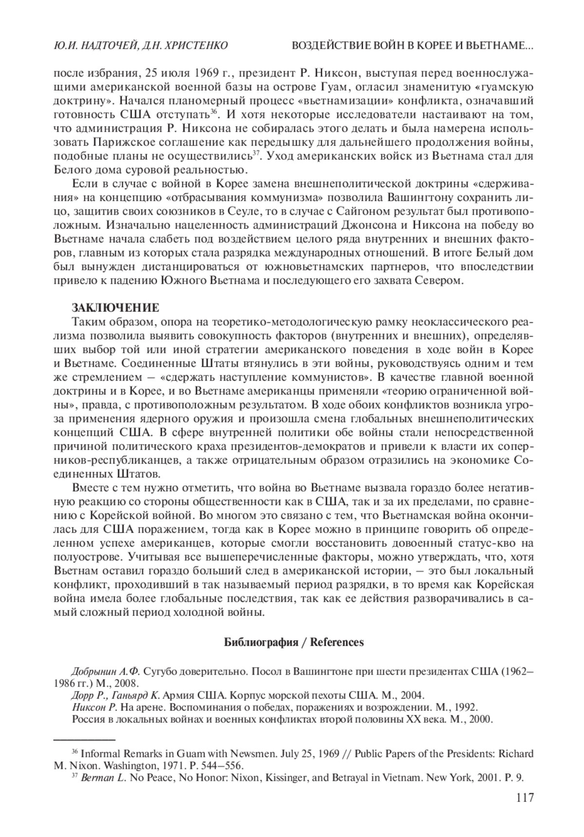 36. Suk Ch., Morrison J. A Comparative Study of the Korean War and the Vietnam War // Korea Observer. 1985. Vol. 16. № 3. P. 260-279.