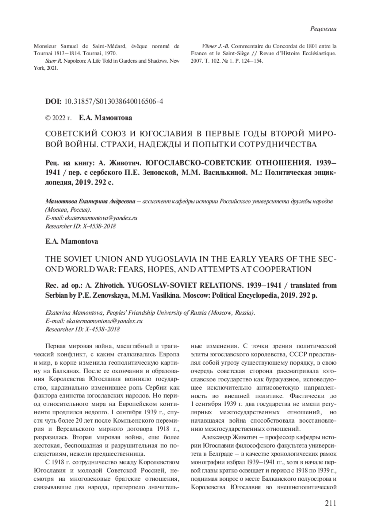 Первая мировая война, масштабный и трагический конфликт, с каким сталкивались Европа и мир, в корне изменила геополитическую картину на Балканах. После ее окончания и образования Королевства Югославия возникло государство, кардинально изменившее роль Сербии как фактора единства югославских народов. Но период относительного мира на Европейском континенте продлился недолго. 1 сентября 1939 г., спустя чуть более 20 лет после Компьенского перемирия и Версальского мирного договора 1918 г., разразилась Вторая мировая война, еще более жестокая, беспощадная и разрушительная по последствиям, нежели предшественница