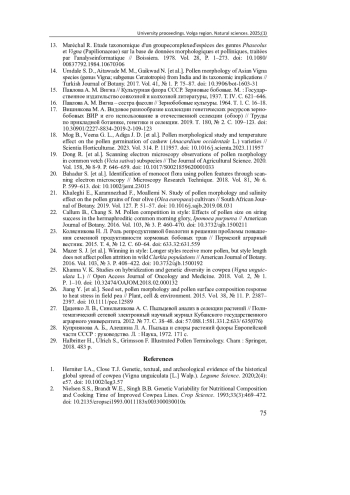 14. Umdale S. D., Aitawade M. M., Gaikwad N. [et al.]. Pollen morphology of Asian Vigna species (genus Vigna; subgenus Ceratotropis) from India and its taxonomic implications // Turkish Journal of Botany. 2017. Vol. 41, № 1. P. 75-87. DOI: 10.3906/bot-1603-31