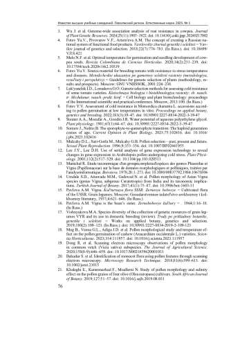 26. Jiang Y. [et al.]. Seed set, pollen morphology and pollen surface composition response to heat stress in field pea // Plant, cell & environment. 2015. Vol. 38, № 11. P. 2387-2397. DOI: 10.1111/pce.12589