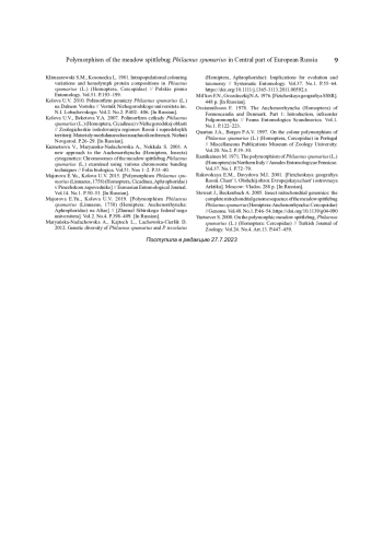 13. Kuznetsova V., Maryanska-Nadachowska A., Nokkala S. 2003. A new approach to the Auchenorrhyncha (Hemiptera, Insecta) cytogenetics: Chromosomes of the meadow spittlebug Philaenus spumarius (L.) examined using various chromosome banding techniques // Folia biologica. Vol.51. Nos 1-2. P.33-40.