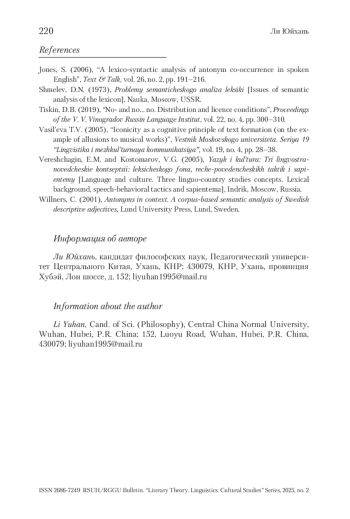 5. Jones 2006 - Jones S. A lexico-syntactic analysis of antonym co-occurrence in spoken English // Text & Talk. 2006. Vol. 26. No. 2. P. 191-216.