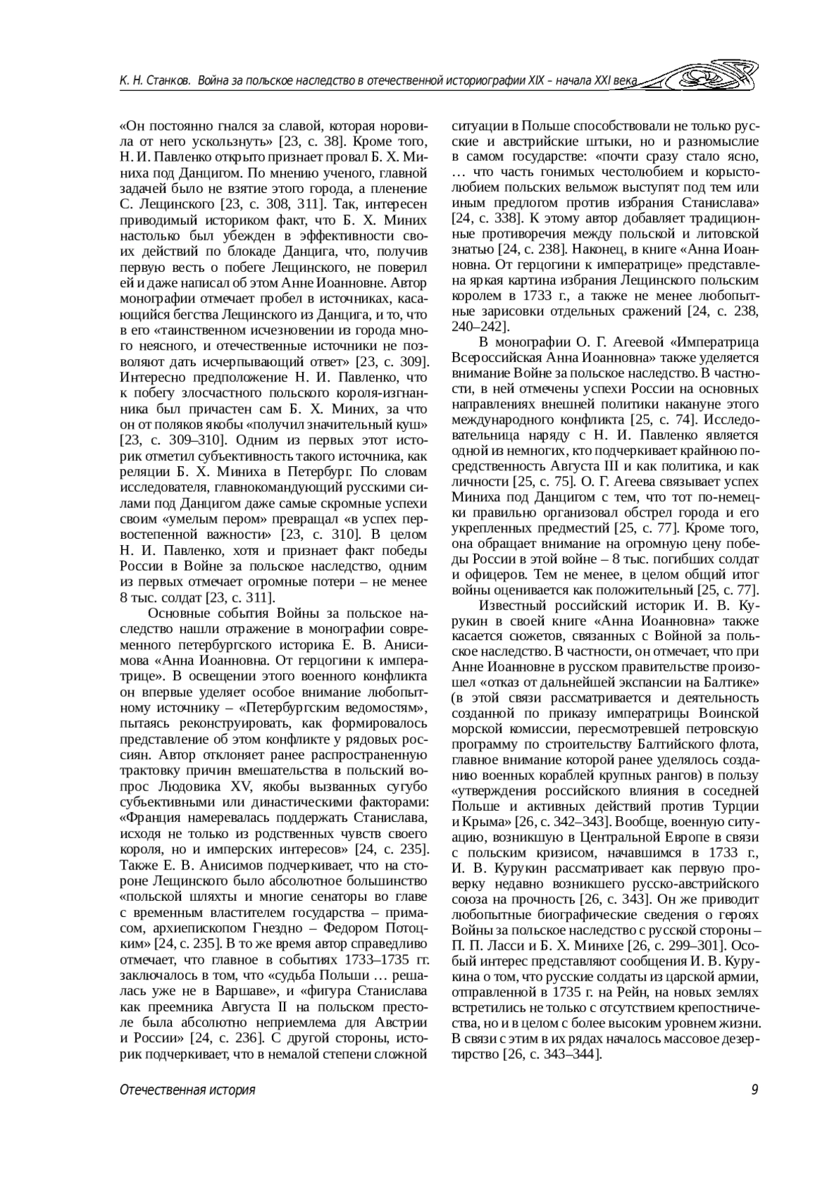 31. Ивонина Л. И.Станислав Лещинский в борьбе за польский трон в 30-е годы XVIII века // Honoris cause: сборник научных статей, посвященный 70-летию профессора Виктора Владимировича Сергеева / сост. и отв. ред. И. О. Дементьев. СПб.: Нестор-История, 2016. С. 145-153. EDN: XDYVVH