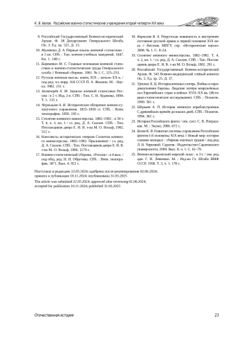 13. Золотарёв А. М. Записки военной статистики России: в 2 т. Изд. 2-е. СПб.: Тип. С. Н. Худекова, 1894. Т. 1. 135 с.