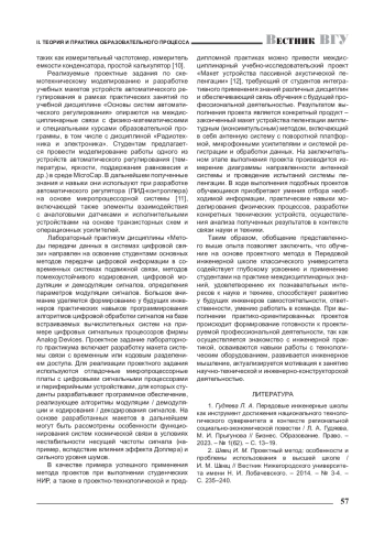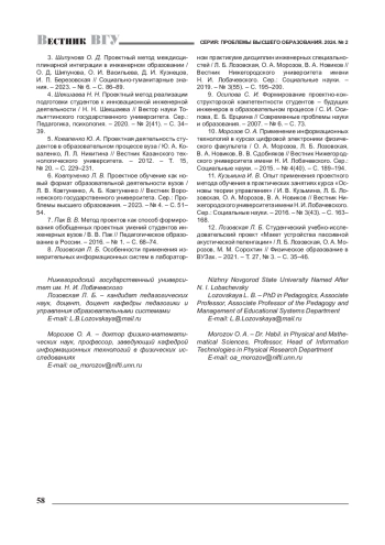 ЛОЗОВСКАЯ Л. Б., МОРОЗОВ О. А. РЕАЛИЗАЦИЯ ПРОЕКТНОГО МЕТОДА ОБУЧЕНИЯ В ПЕРЕДОВОЙ ИНЖЕНЕРНОЙ ШКОЛЕ КЛАССИЧЕСКОГО УНИВЕРСИТЕТА // ВЕСТНИК ВОРОНЕЖСКОГО ГОСУДАРСТВЕННОГО УНИВЕРСИТЕТА. СЕРИЯ: ПРОБЛЕМЫ ВЫСШЕГО ОБРАЗОВАНИЯ. 2024. № 2