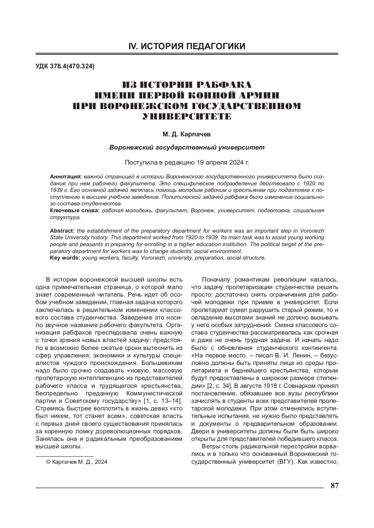 3. Карпачев, М. Д. Воронежский университет: Начало пути / М. Д. Карпачев. - Воронеж: Воронежский государственный университет, 1998. - 112 с. EDN: VJOPUZ