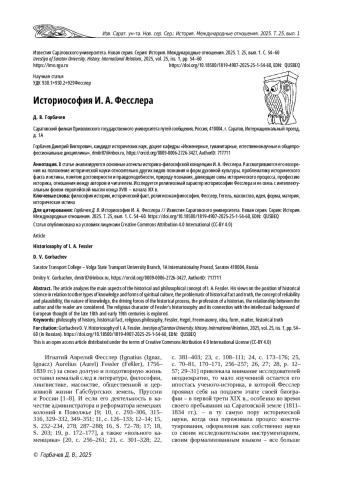 1. Горбачев Д. В. И. А. Фесслер - немецкий мыслитель и общественный деятель // Новая и новейшая история. 2012. № 3. С. 217-224. EDN: PARGPB