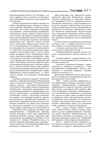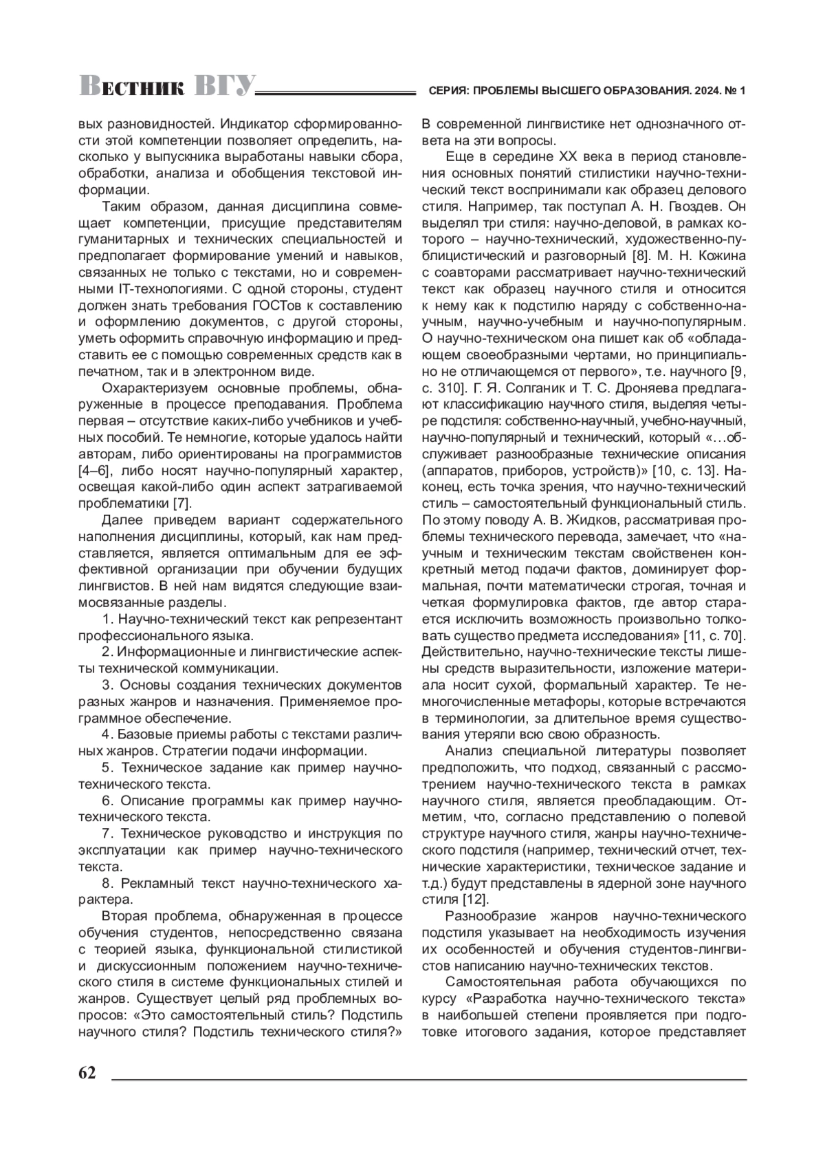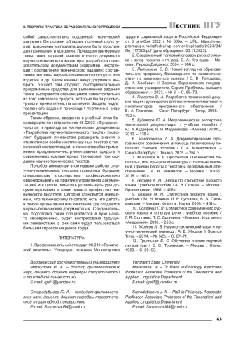 МЕРКУЛОВА И. А., СТАРОДУБЦЕВА Ю. А. О ПОДГОТОВКЕ БАКАЛАВРОВ ЛИНГВИСТИКИ К НОВОЙ ПРОФЕССИИ ТЕХНИЧЕСКОГО ПИСАТЕЛЯ (ИЗ ОПЫТА ВОРОНЕЖСКОГО ГОСУДАРСТВЕННОГО УНИВЕРСИТЕТА) // ВЕСТНИК ВОРОНЕЖСКОГО ГОСУДАРСТВЕННОГО УНИВЕРСИТЕТА. СЕРИЯ: ПРОБЛЕМЫ ВЫСШЕГО ОБРАЗОВАНИЯ. 2024. № 1