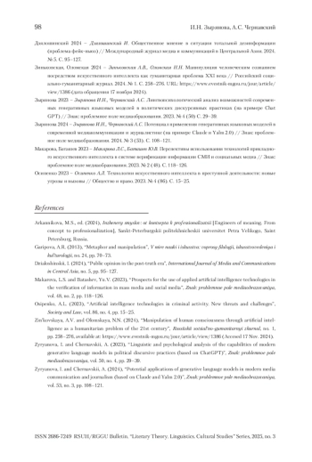 3. Дзялошинский 2024 - Дзялошинский И. Общественное мнение в ситуации тотальной дезинформации (проблема фейк-ньюз) // Международный журнал медиа и коммуникаций в Центральной Азии. 2024. № 5. С. 95-127.