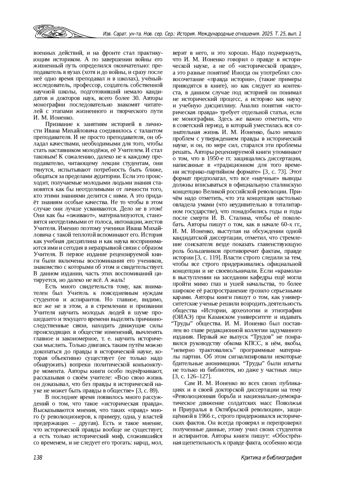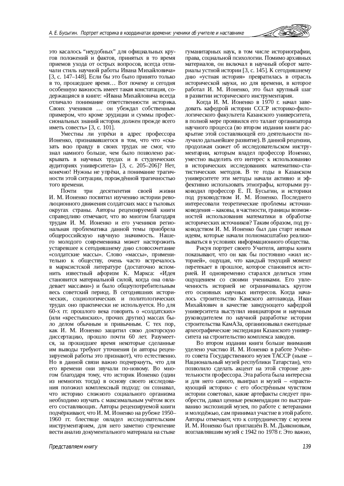 БУСЫГИН А. Е. ПОРТРЕТ ИСТОРИКА В КООРДИНАТАХ ВРЕМЕНИ: УЧЕНИКИ ОБ УЧИТЕЛЕ И НАСТАВНИКЕ // ИЗВЕСТИЯ САРАТОВСКОГО УНИВЕРСИТЕТА. НОВАЯ СЕРИЯ. СЕРИЯ: ИСТОРИЯ. МЕЖДУНАРОДНЫЕ ОТНОШЕНИЯ. 2025. Т. 25 № 1