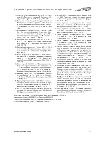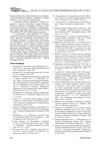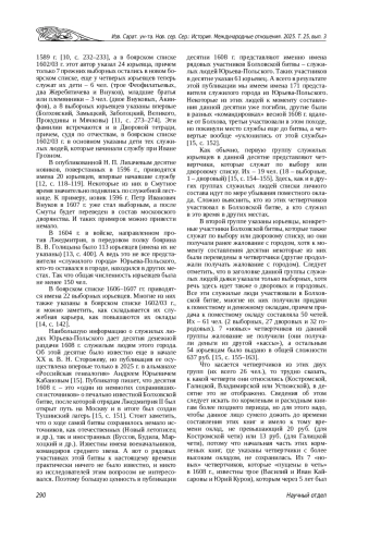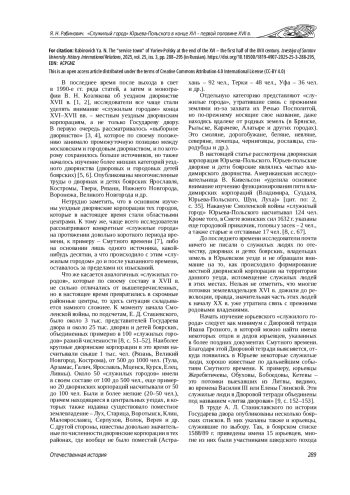 РАБИНОВИЧ Я. Н. «СЛУЖИЛЫЙ ГОРОД» ЮРЬЕВА-ПОЛЬСКОГО В КОНЦЕ XVI - ПЕРВОЙ ПОЛОВИНЕ XVII В. // ИЗВЕСТИЯ САРАТОВСКОГО УНИВЕРСИТЕТА. НОВАЯ СЕРИЯ. СЕРИЯ: ИСТОРИЯ. МЕЖДУНАРОДНЫЕ ОТНОШЕНИЯ. 2025. Т. 25 № 3