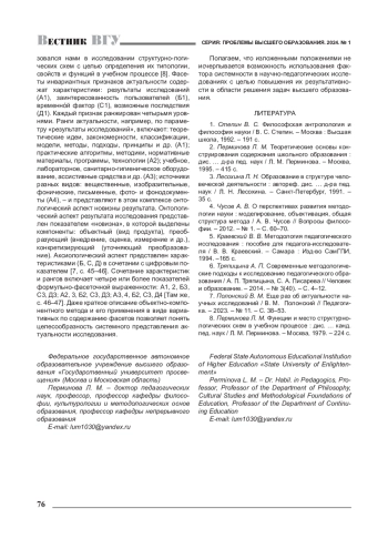 ПЕРМИНОВА Л. М. ФАКТОР СИСТЕМНОСТИ В ПОВЫШЕНИИ ДОКАЗАТЕЛЬНОСТИ РЕЗУЛЬТАТОВ ПЕДАГОГИЧЕСКИХ ИССЛЕДОВАНИЙ ПО ПРОБЛЕМАМ ВЫСШЕГО ОБРАЗОВАНИЯ // ВЕСТНИК ВОРОНЕЖСКОГО ГОСУДАРСТВЕННОГО УНИВЕРСИТЕТА. СЕРИЯ: ПРОБЛЕМЫ ВЫСШЕГО ОБРАЗОВАНИЯ. 2024. № 1