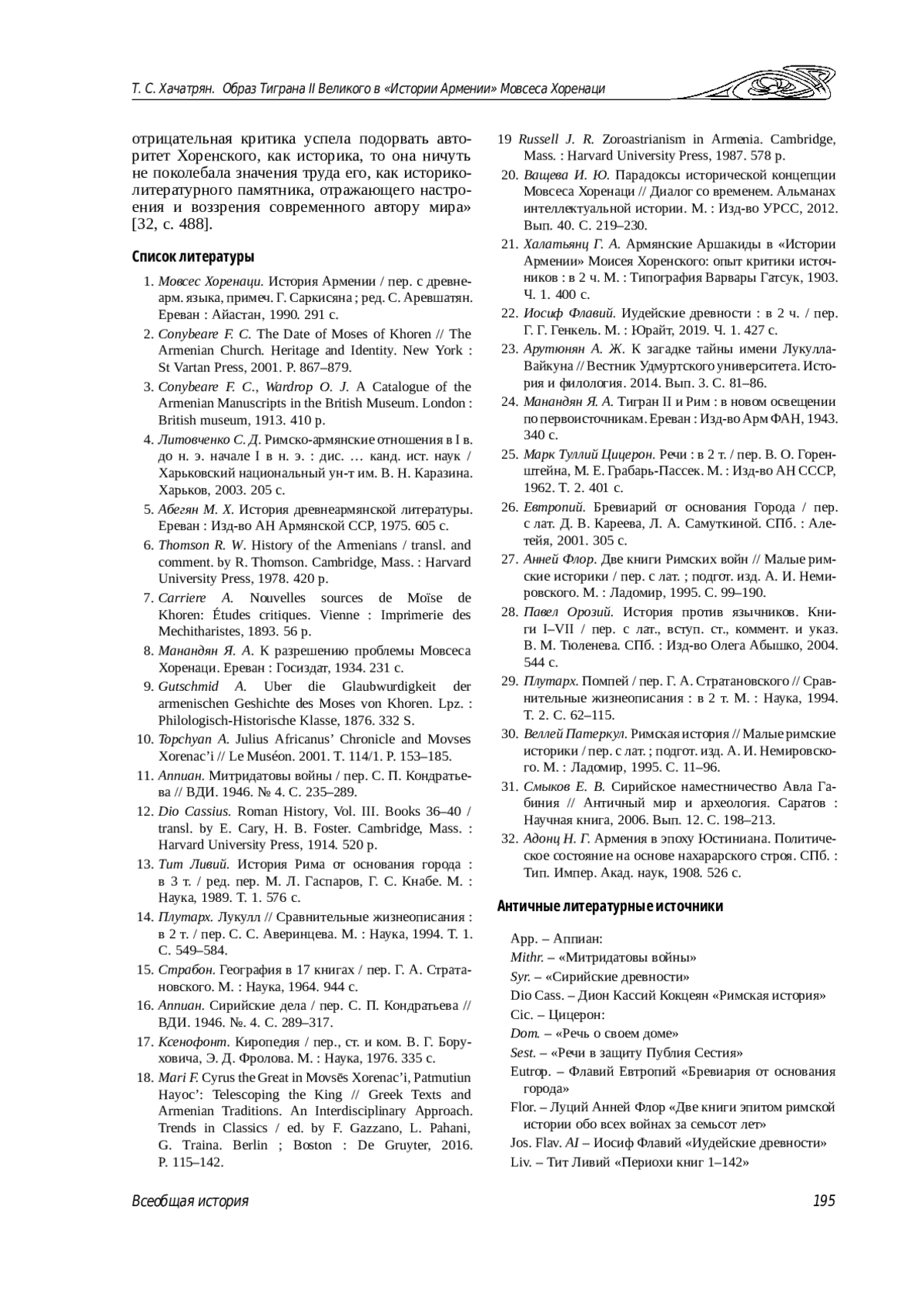 21. Халатьянц Г. А. Армянские Аршакиды в “Истории Армении” Моисея Хоренского: опыт критики источников: в 2 ч. М.: Типография Варвары Гатсук, 1903. Ч. 1. 400 с.