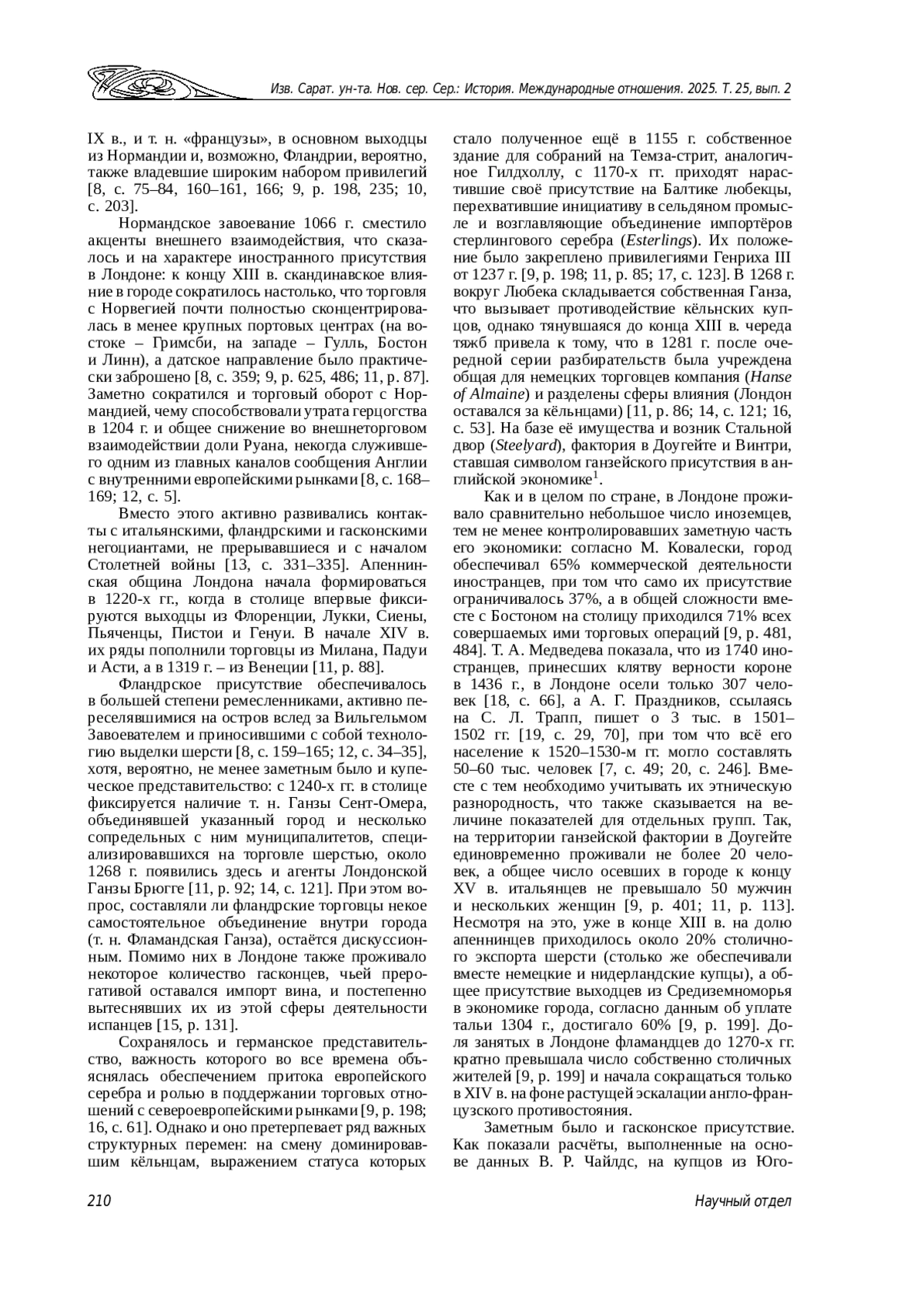 13. Чернова Л. Н. Лондон и города континентальной Европы в первый период Столетней войны // Известия Саратовского университета. Новая серия. Серия: История. Международные отношения. 2023. Т. 23, вып. 3. С. 327-337. ,. DOI: 10.18500/1819-4907-2023-23-3-327-337 EDN: YBLJEM