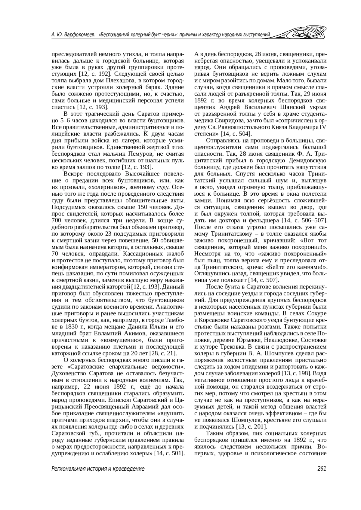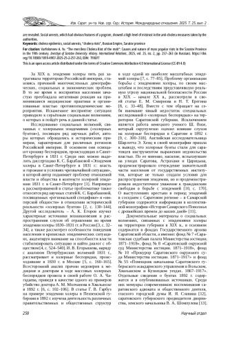 ВАРФОЛОМЕЕВ А. Ю. «БЕСПОЩАДНЫЙ ХОЛЕРНЫЙ БУНТ ЧЕРНИ»: ПРИЧИНЫ И ХАРАКТЕР МАССОВЫХ НАРОДНЫХ ВЫСТУПЛЕНИЙ В САРАТОВСКОЙ ГУБЕРНИИ В XIX ВЕКЕ // ИЗВЕСТИЯ САРАТОВСКОГО УНИВЕРСИТЕТА. НОВАЯ СЕРИЯ. СЕРИЯ: ИСТОРИЯ. МЕЖДУНАРОДНЫЕ ОТНОШЕНИЯ. 2025. Т. 25 № 2