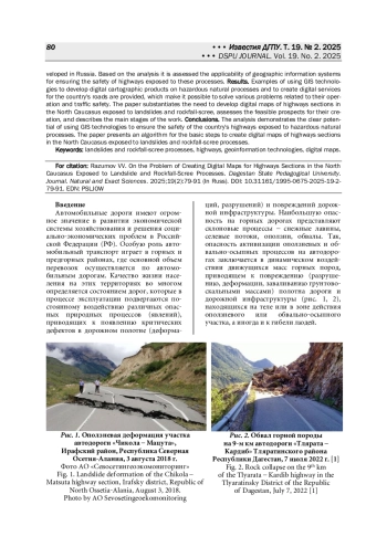 4. Разумов В. В., Богданова Н. Д., Разумова Н. В., Калов Р. О., Шагин С. И. Активность и опасность оползневых проявлений на автомобильных дорогах Республики Дагестан // ГеоРиск. 2022. Т. 16. № 4. С. 8-23.