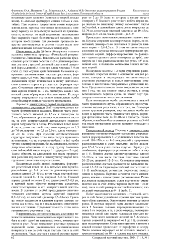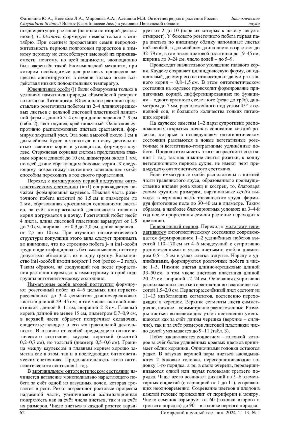 ФАТЮНИНА Ю. А., НОВИКОВА Л. А., МИРОНОВА А. А., АЛЁШИНА М. В. ОНТОГЕНЕЗ РЕДКОГО РАСТЕНИЯ РОССИИ CHEPHALARIALITVINOVII BOBROV (CAPRIFOLIACEAE JUSS.) В УСЛОВИЯХ ПЕНЗЕНСКОЙ ОБЛАСТИ // САМАРСКИЙ НАУЧНЫЙ ВЕСТНИК. 2024. ТОМ 13, № 1