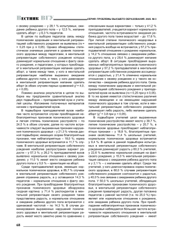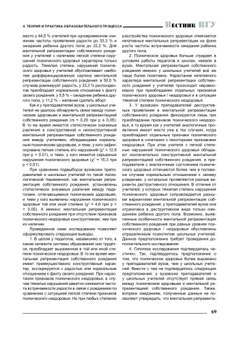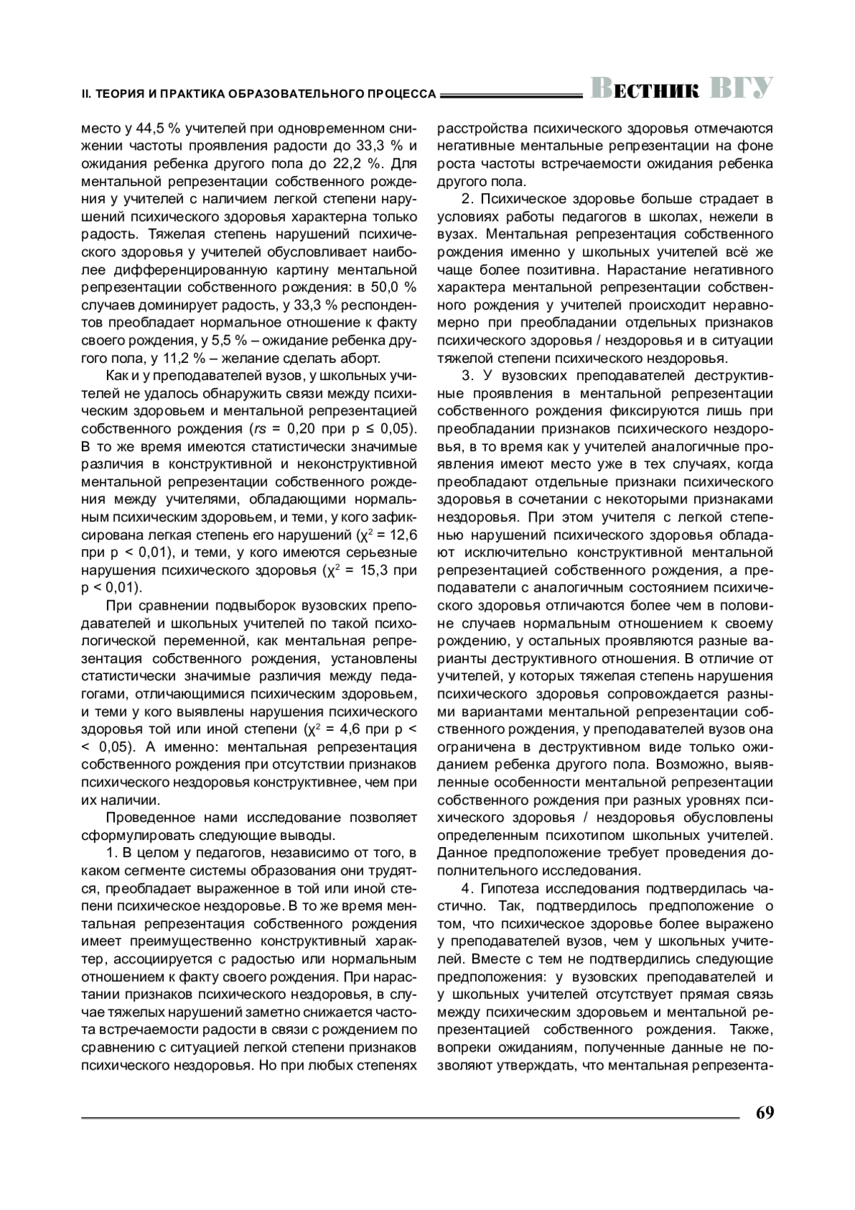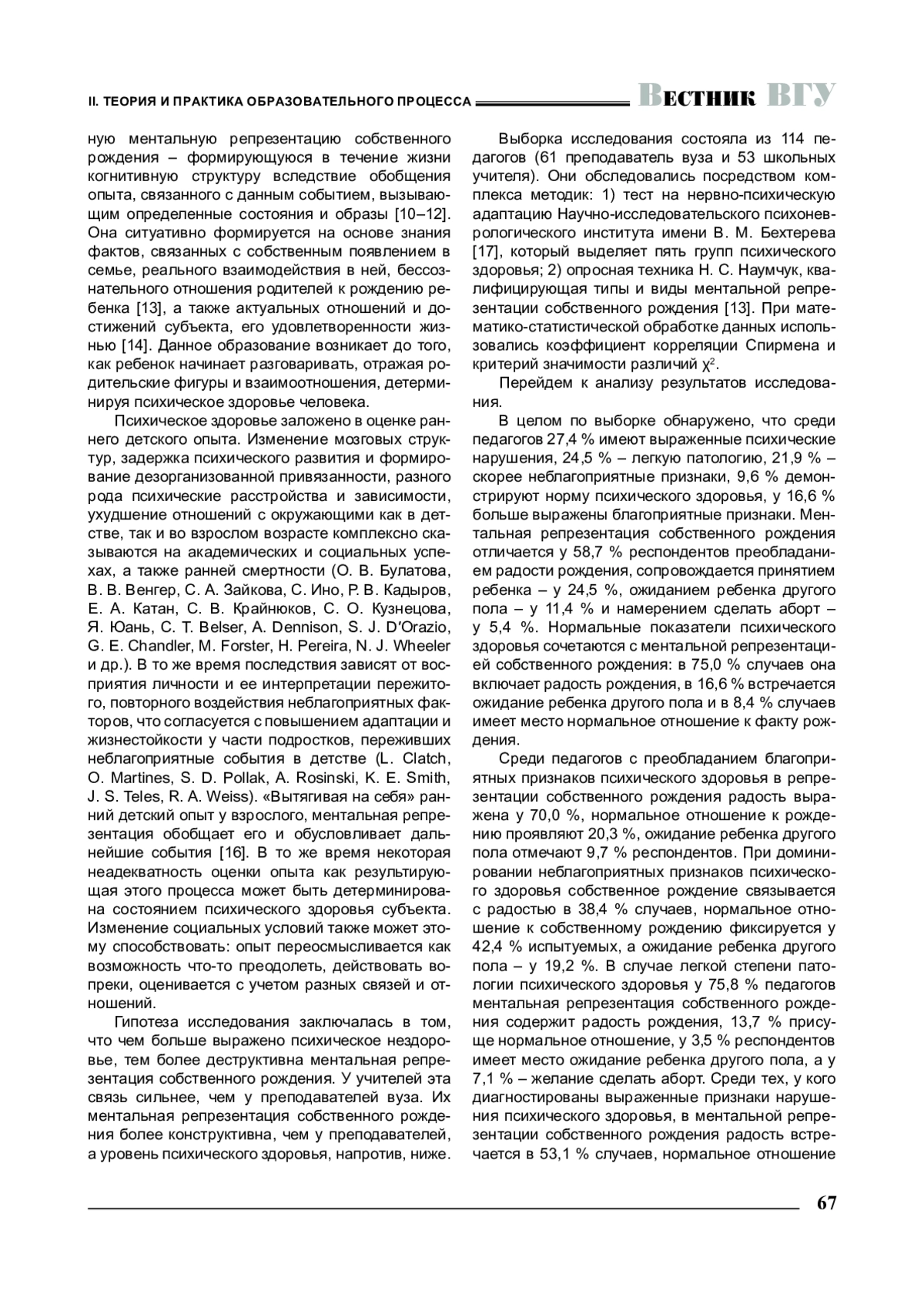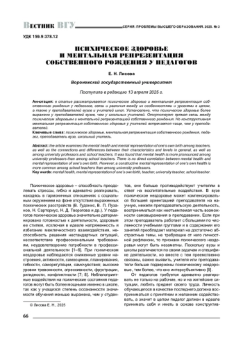 Ключевые фразы: ПСИХИЧЕСКОЕ ЗДОРОВЬЕ, ментальная репрезентация собственного рождения, ПЕДАГОГ, преподаватель вуза, школьный учитель