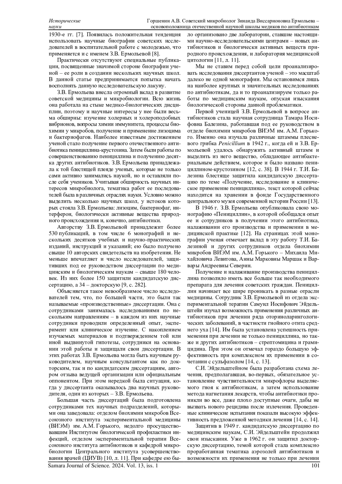 7. Горшенин А.В. История научно-практической деятельности советского микробиолога З.В. Ермольевой по изучению и применению антибактериальных агентов в 1930-е гг.: монография. Самара: Инсома-пресс, 2022. 224 с.