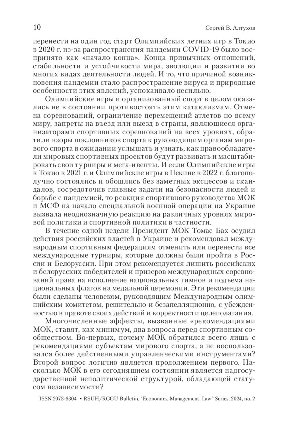 В статье представлены материалы, связанные с анализом причин возникновения дисфункций управления в современном спорте и дальнейшими перспективами развития спорта в условиях изменяющегося мирового порядка. Как это ни парадоксально, начало конфликта на Украине и последующая реакция спортивных чиновников Международного олимпийского комитета (МОК) и международных спортивных федераций (МСФ) позволила реально посмотреть на существующие модели управления отдельными видами спорта и всей олимпийской системой в прикладном аспекте.