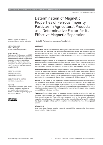 Введение: Вопрос определения магнитных характеристик частиц малых размеров остается проблемным, а потому может сдерживать решение научных и научно-прикладных задач (в числе важнейших из них - удаление ферропримесей из сельхозпродукции) и требует отдельного рассмотрения, в том числе с привлечением оригинальных подходов и идей.