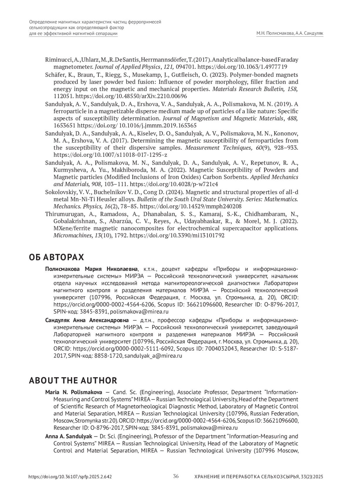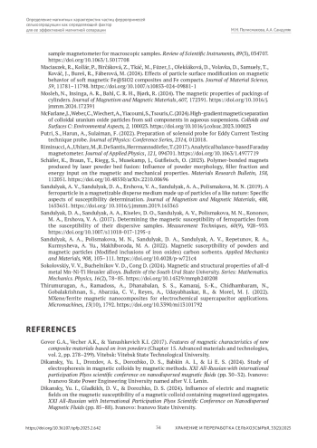 24. Sandulyak, D. А., Sandulyak, А. А., Кiselev, D. О., Sandulyak, А. V., Polismakova, М. N., Kononov, M. A., Ershova, V. А. (2017). Determining the magnetic susceptibility of ferroparticles from the susceptibility of their dispersive samples. Measurement Techniques, 60(9), 928-933. DOI: 10.1007/s11018-017-1295-z EDN: DWVKAQ