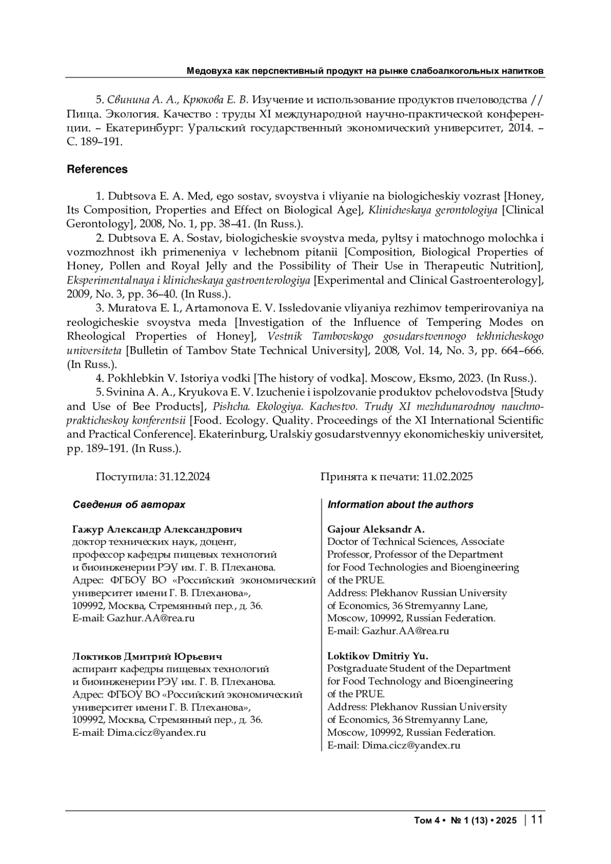 Svinina A. A., Kryukova E. V. Izuchenie i ispolzovanie produktov pchelovodstva [Study and Use of Bee Products], Pishcha. Ekologiya. Kachestvo. Trudy XI mezhdunarodnoy nauchno-prakticheskoy konferentsii [Food. Ecology. Quality. Proceedings of the XI International Scientific and Practical Conference]. Ekaterinburg, Uralskiy gosudarstvennyy ekonomicheskiy universitet, pp. 189-191. (In Russ.)
