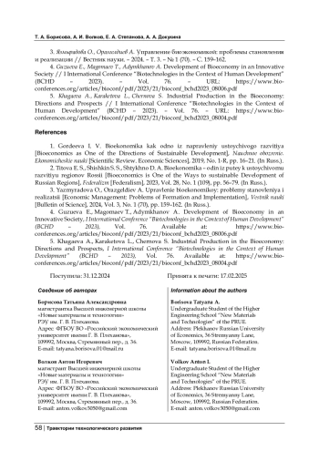 БОРИСОВА Т. А., ВОЛКОВ А. И., СТЕПАНОВА Е. А., ДОКУКИНА А. А. БИОЭКОНОМИКА: КОНЦЕПЦИЯ, РАЗВИТИЕ, ПРОБЛЕМЫ // ТРАЕКТОРИИ ТЕХНОЛОГИЧЕСКОГО РАЗВИТИЯ. 2025. № 1 (13), ТОМ 4