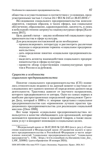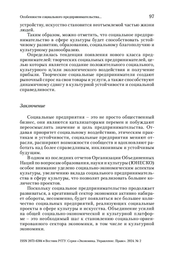 Статья: Особенности социального предпринимательства в сфере культуры (2024)