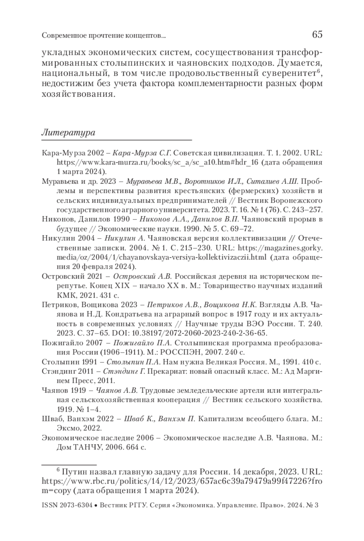 С учетом текущей геополитической ситуации, задач укрепления национального суверенитета страны, преодоления демографического кризиса, тренда на экологизацию сельскохозяйственного производства, автор аргументированно доказывает актуальность гибких подходов А. В. Чаянова, который отстаивал идеи социальной эффективности производства.