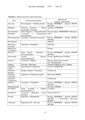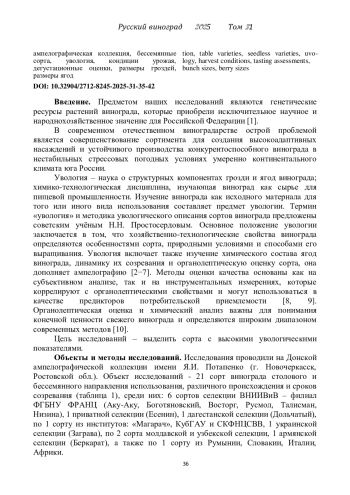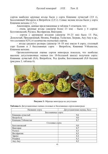 Статья: УВОЛОГИЧЕСКАЯ ОЦЕНКА СТОЛОВЫХ И БЕССЕМЯННЫХ СОРТОВ ВИНОГРАДА НА КОЛЛЕКЦИИ В 2024 ГОДУ (2025)