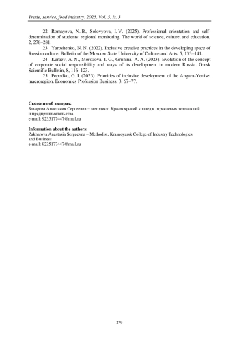 25. Поподько, Г. И. Приоритеты инклюзивного развития регионов Ангаро-Енисейского макрорегиона [Текст] / Г. И. Поподько // Экономика Профессия Бизнес. - 2023. - № 3. - С. 67-77.