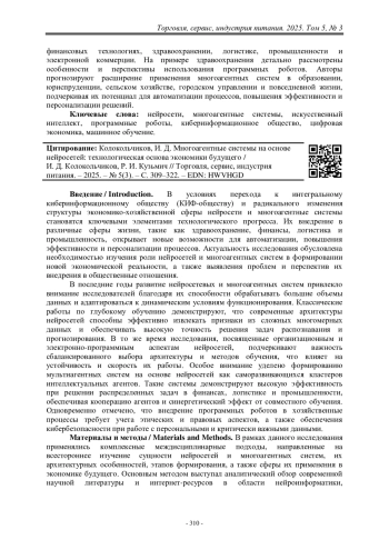 В условиях перехода к интегральному киберинформационному обществу (КИФ-обществу) и радикального изменения структуры экономико-хозяйственной сферы нейросети и многоагентные системы становятся ключевыми элементами технологического прогресса. Их внедрение в различные сферы жизни, такие как здравоохранение, финансы, логистика и промышленность, открывает новые возможности для автоматизации, повышения эффективности и персонализации процессов. Актуальность исследования обусловлена необходимостью изучения роли нейросетей и многоагентных систем в формировании новой экономической реальности, а также выявления проблем и перспектив их внедрения в общественные отношения.