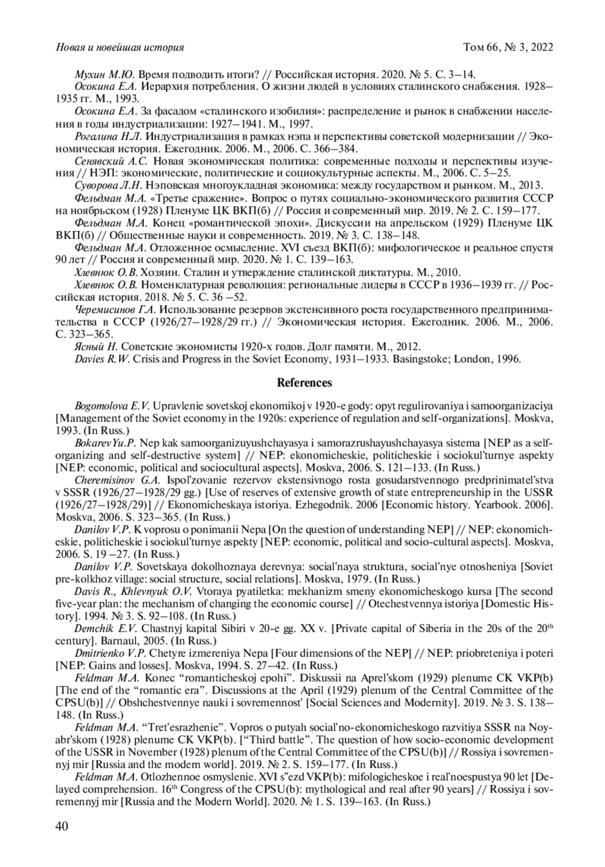 1. Богомолова Е.В. Управление советской экономикой в 1920-е годы: опыт регулирования и самоорганизация. М., 1993.