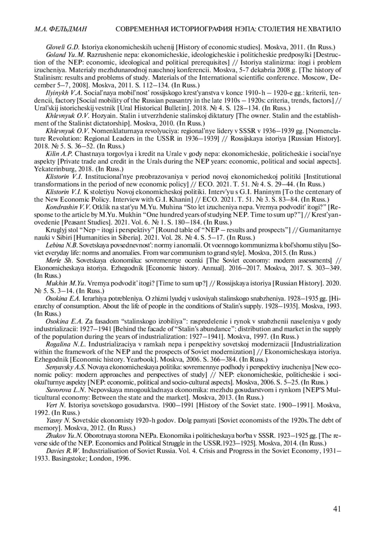 16. Клисторин В.И. Институциональные преобразования в период новой экономической политики // ЭКО. Т. 51. 2021. № 4. С. 29-44. EDN: CABOTV