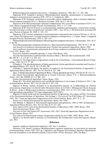 16. D’Onofrio F. Agricultural figures: the politics of numbers at the International Institute of Agriculture // Agricultural History Review. 2017. Vol. 65. Part II. P. 227-296.