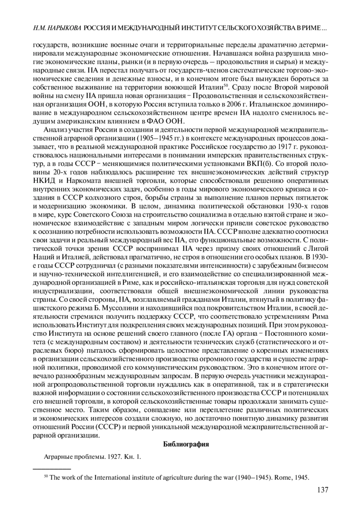 5. Нарыкова Н.М. Международная зерновая конференция 1931 года в Риме и позиция СССР // Северо-Запад в аграрной истории России. Калининград, 2012. С. 217-230. EDN: SXKQED
