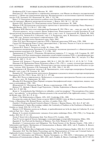 54. Smith A.K. Information and Efficiency: Russian Newspapers, ca. 1700-1850 // Information and Empire: Mechanisms of Communication in Russia, 1600-1850 / eds S. Franklin, K. Bowers. Cambridge (UK), 2017. P. 185-211.