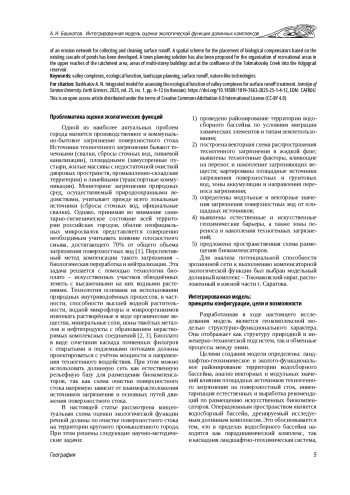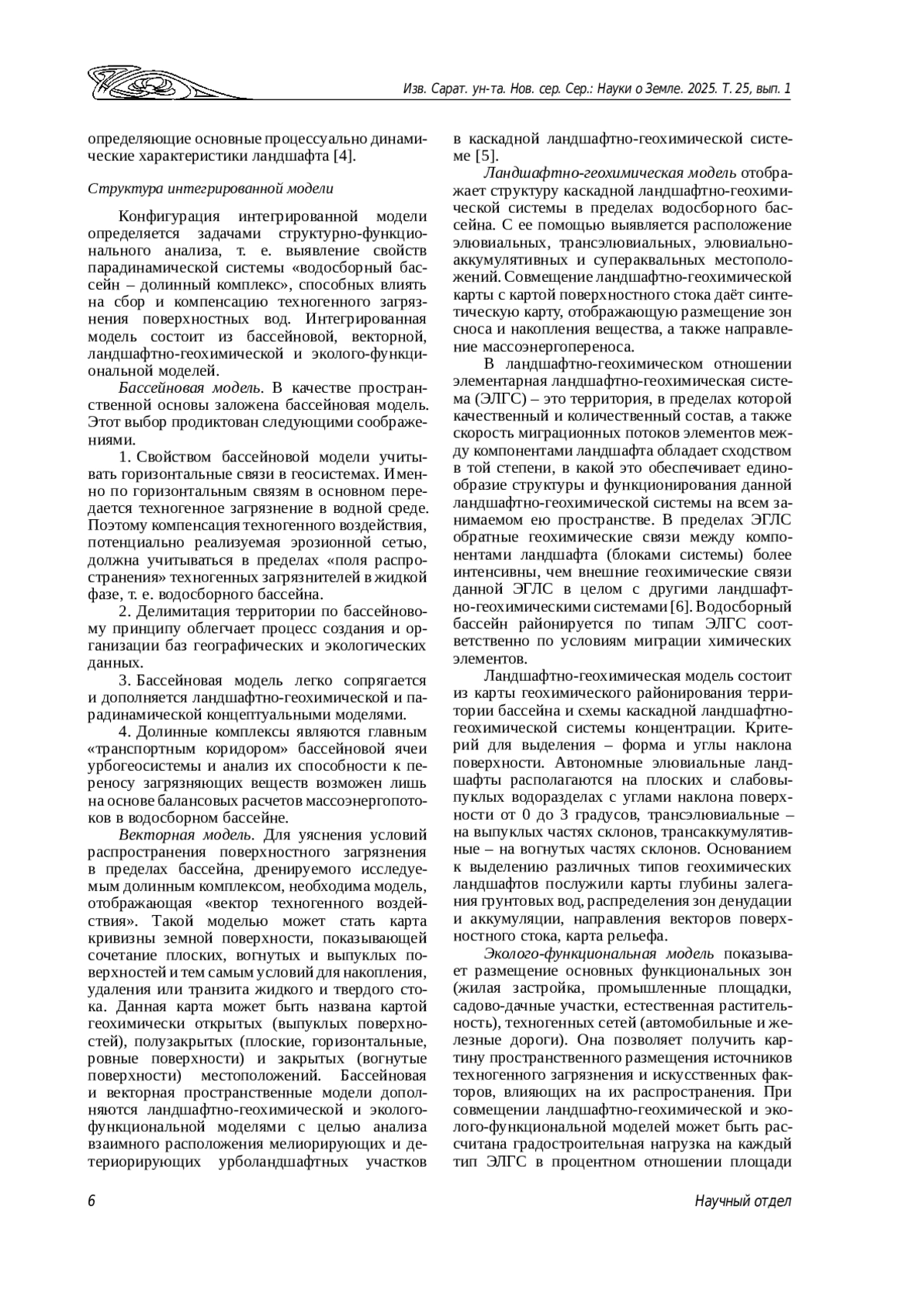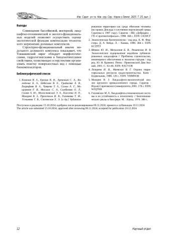 Статья: ИНТЕГРИРОВАННАЯ МОДЕЛЬ ОЦЕНКИ ЭКОЛОГИЧЕСКОЙ ФУНКЦИИ ДОЛИННЫХ КОМПЛЕКСОВ ПО ОЧИСТКЕ ПОВЕРХНОСТНОГО СТОКА (2025)