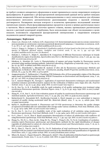 7. Gu H., Sun Ya., Lv R. A feasibility study for rapid evaluation of oil quality undergoing oven treatment using synchronous fluorescence spectrum. Chemical Papers. 2019, V. 73, Is. 8, pp. 1953-1959. DOI: 10.1007/s11696-019-00748-3