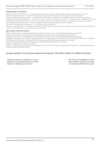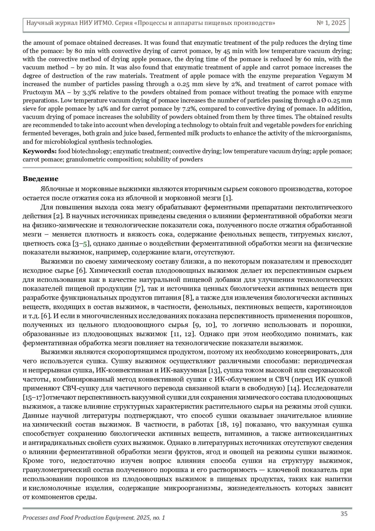 17. Яшонков А.А., Курдогло М.Э. Исследование влияния предварительного порообразования на кинетику процесса сушки при получении снеков из моркови // Ползунковый вестник. 2018. № 4. С. 64-67. DOI: 10.25712/ASTU.2072-8921.2018.04.013