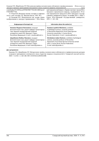 13. Казакова Л.Н. О возможностях интегративного подхода при изучении студентами-экономистами имён собственных в иноязычных торговых знаках и слоганах // Известия Российского государственного педагогического университета имени А.И. Герцена. 2022. № 23. С. 158-167. EDN: XISWTW