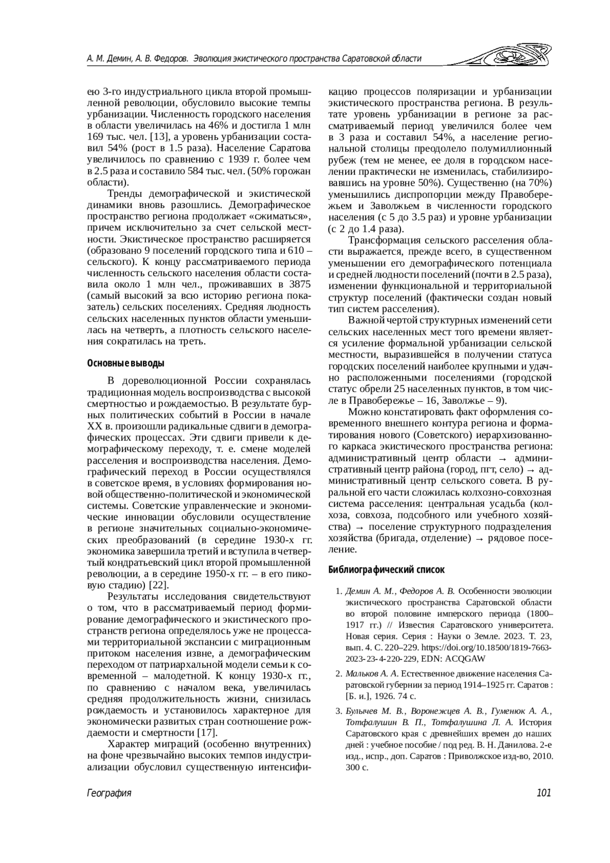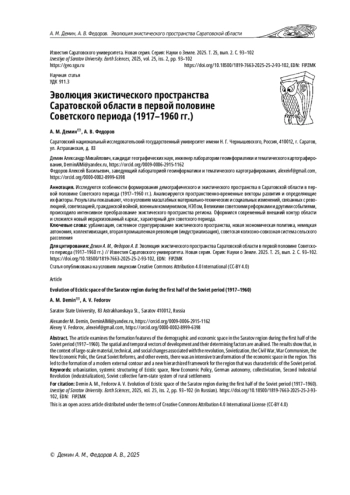 ДЁМИН А. М., ФЕДОРОВ А. В. ЭВОЛЮЦИЯ ЭКИСТИЧЕСКОГО ПРОСТРАНСТВА САРАТОВСКОЙ ОБЛАСТИ В ПЕРВОЙ ПОЛОВИНЕ СОВЕТСКОГО ПЕРИОДА (1917-1960 ГГ.) // ИЗВЕСТИЯ САРАТОВСКОГО УНИВЕРСИТЕТА. НОВАЯ СЕРИЯ. СЕРИЯ НАУКИ О ЗЕМЛЕ. 2025. Т. 25 № 2