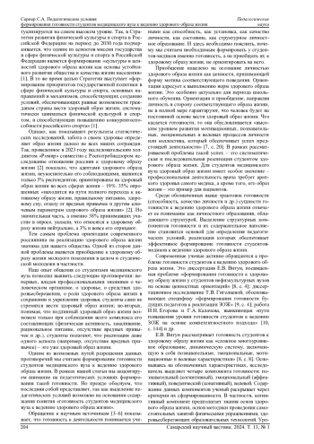 Статья: ПЕДАГОГИЧЕСКИЕ УСЛОВИЯ ФОРМИРОВАНИЯ ГОТОВНОСТИ СТУДЕНТОВ МЕДИЦИНСКОГО ВУЗА К ВЕДЕНИЮ ЗДОРОВОГО ОБРАЗА ЖИЗНИ (2024)