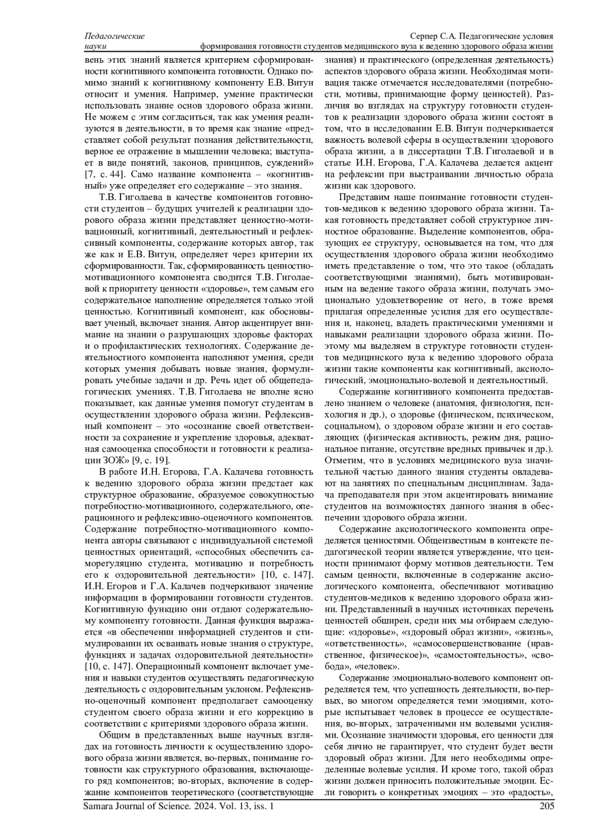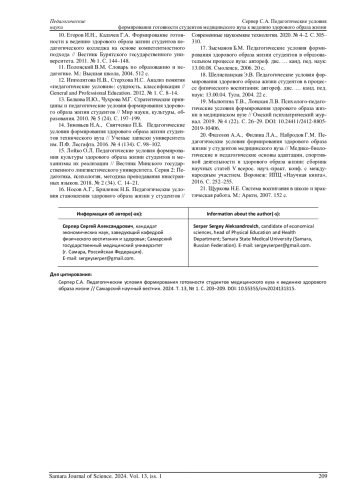 СЕРПЕР С. А. ПЕДАГОГИЧЕСКИЕ УСЛОВИЯ ФОРМИРОВАНИЯ ГОТОВНОСТИ СТУДЕНТОВ МЕДИЦИНСКОГО ВУЗА К ВЕДЕНИЮ ЗДОРОВОГО ОБРАЗА ЖИЗНИ // САМАРСКИЙ НАУЧНЫЙ ВЕСТНИК. 2024. ТОМ 13, № 1