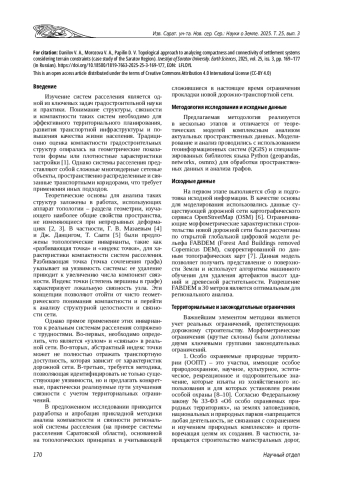 Статья: ТОПОЛОГИЧЕСКИЙ ПОДХОД К АНАЛИЗУ КОМПАКТНОСТИ И СВЯЗНОСТИ СИСТЕМ РАССЕЛЕНИЯ С УЧЕТОМ ОГРАНИЧЕНИЙ НА МЕСТНОСТИ (НА ПРИМЕРЕ САРАТОВСКОЙ ОБЛАСТИ) (2025)