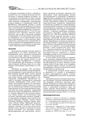 В статье рассматриваются применение топологических концепций для анализа структуры и оценка компактности региональной системы расселения. Предложена методика, адаптирующая классические топологические инварианты к оценке реальных транспортно-планировочных сетей на основе данных OpenStreetMap с учётом физико-географических и законодательных ограничений. Вместо абстрактных индексов связности узлов графа системы расселения вводится новый операционный показатель «индекс выхода» – число физических, нетупиковых дорожных выездов из населенного пункта, который применяется для выявления уязвимостей в структуре расселения при анализе «разбивающих точек» (точек сочленения). Предложенная методика апробирована на примере Саратовской области для анализа компактности и расчета новых оптимальных связей систем расселения, которая учитывала существующие данные о рельефе, систему особо охраняемых природных территориях и зоны с особыми условиями использования территорий.