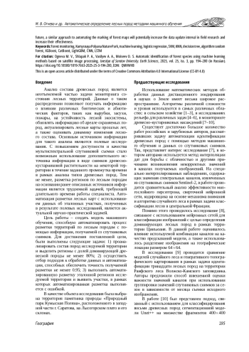10. Bolyn C., Lejeune P., Michez A., Latte N. Mapping tree species proportions from satellite imagery using spectralspatial deep learning // Remote Sensing of Environment. 2022. Vol. 280. Art. 113205 ,. DOI: 10.1016/j.rse.2022.113205 EDN: NGROST