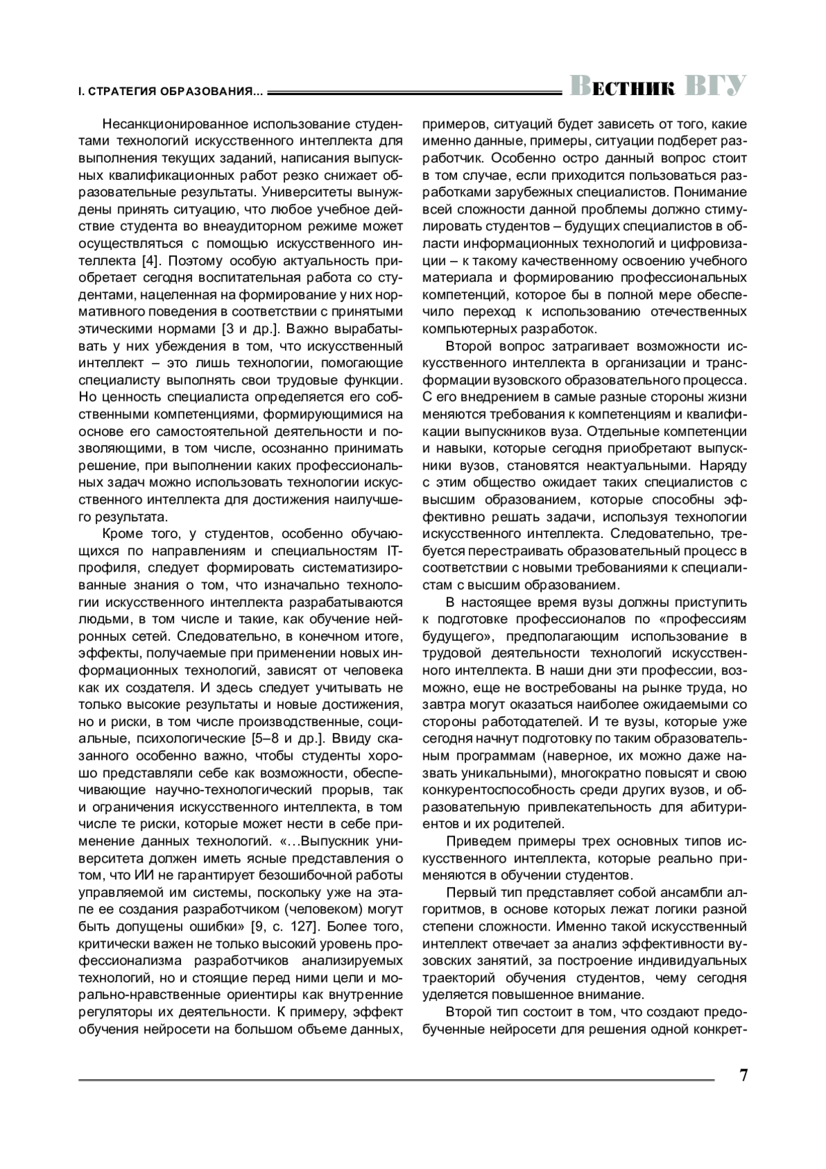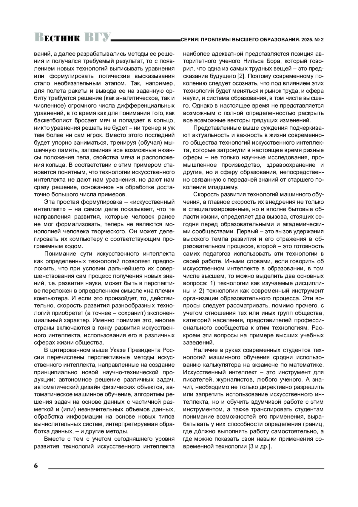 КОСТИН В. А. ИСКУССТВЕННЫЙ ИНТЕЛЛЕКТ В ВЫСШЕМ ОБРАЗОВАНИИ // ВЕСТНИК ВОРОНЕЖСКОГО ГОСУДАРСТВЕННОГО УНИВЕРСИТЕТА. СЕРИЯ: ПРОБЛЕМЫ ВЫСШЕГО ОБРАЗОВАНИЯ. 2025. № 2